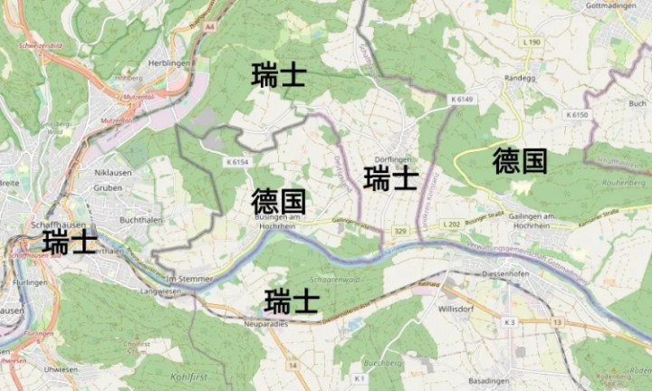 瑞士北部围聚德国的地区,有一块德国的飞地,叫作念布辛根。布辛根面积7.56平方公里,东说念主口1500东说念主。